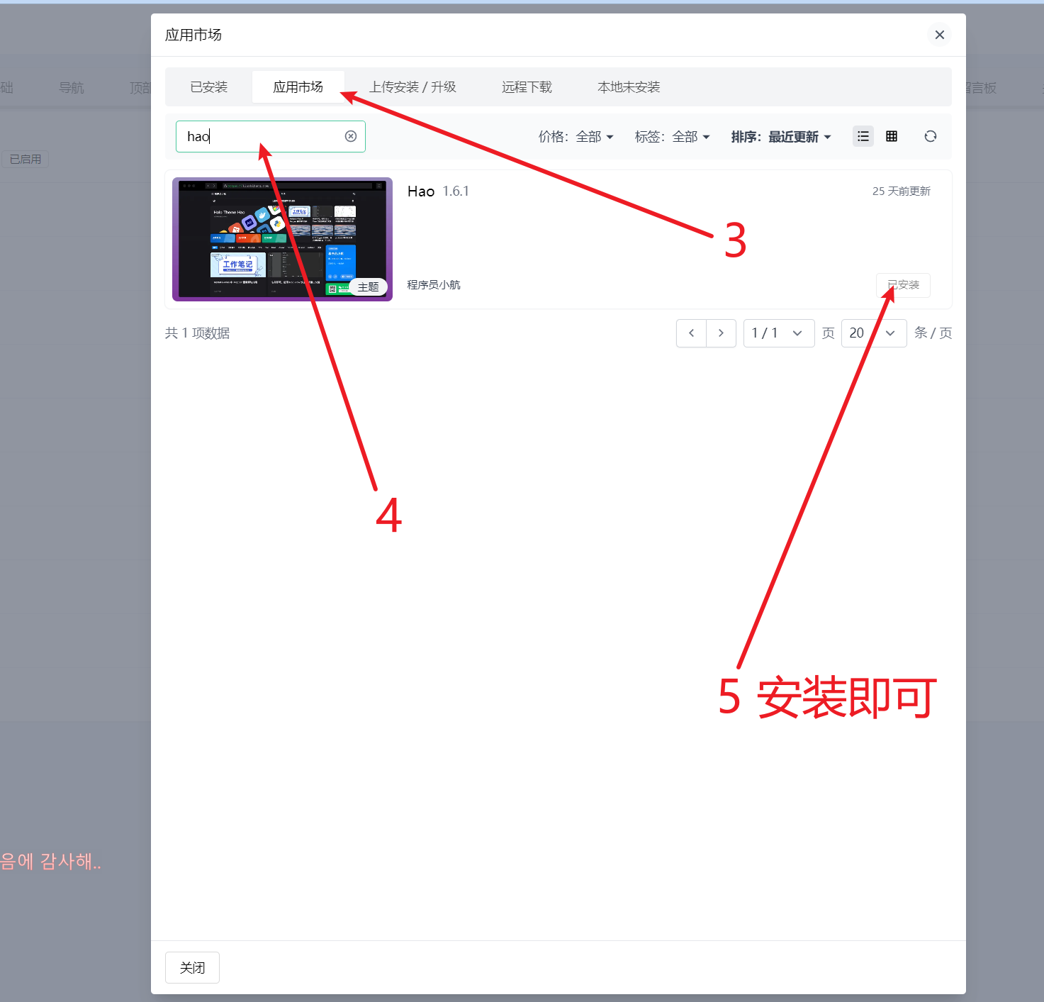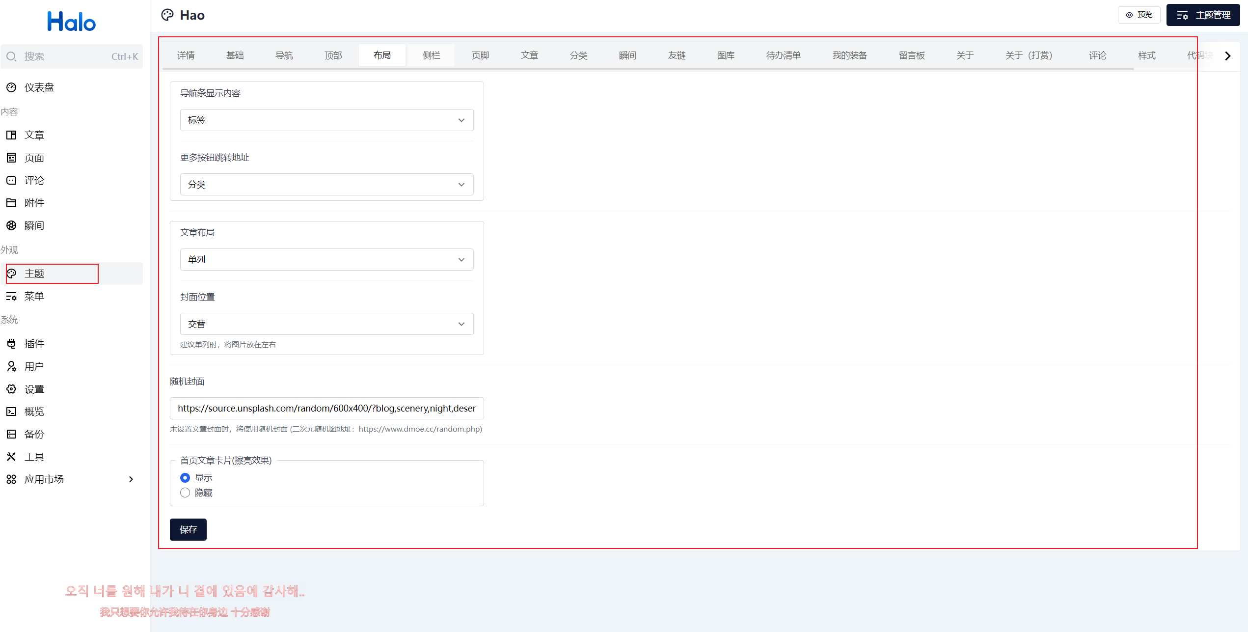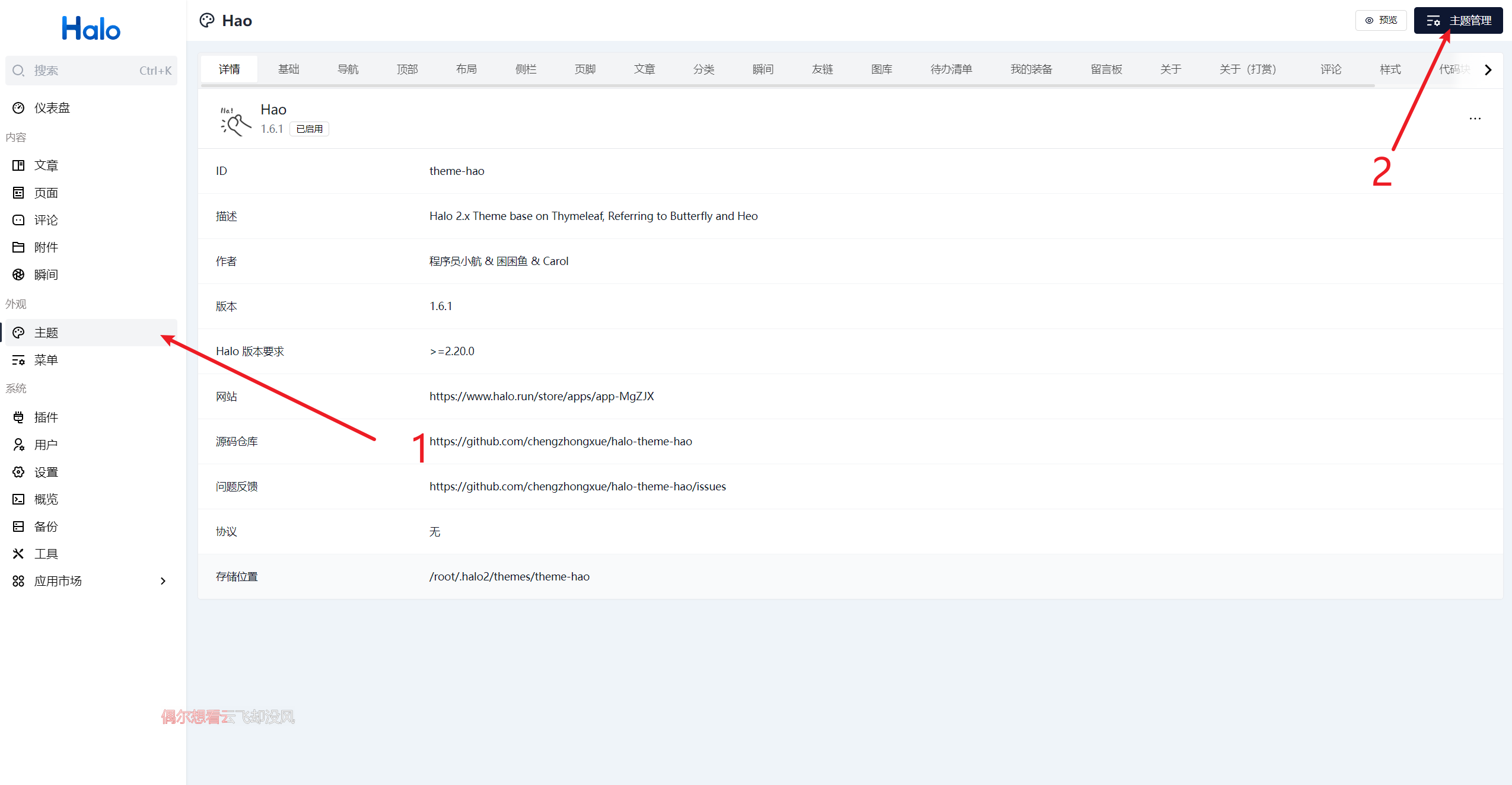 主题安装官方文档: https://www.yuque.com/liuzhihangs/halo-theme-hao