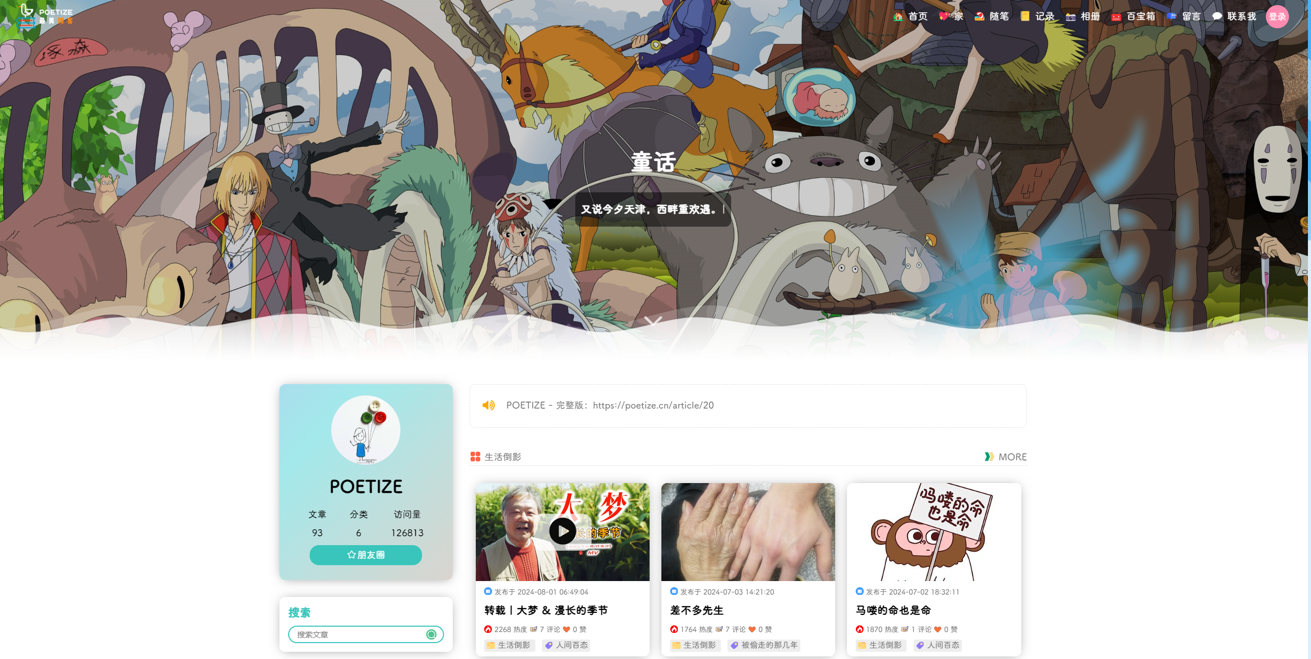 演示地址:https://poetize.cn/,代码地址:https://gitee.com/littledokey/poetize